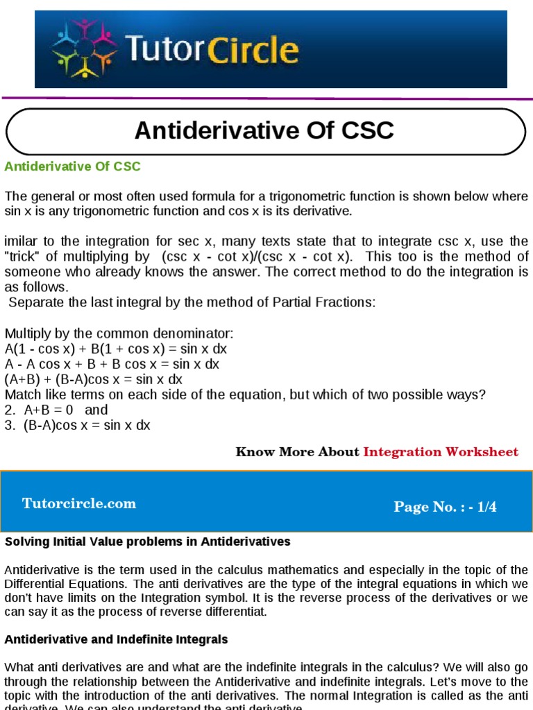 Antiderivative Of CSC by tutorcircle team - Issuu from image.isu.pub From above, we found that the first derivative of ln(2x) = 1/x. Here are some basic examples: The interface is specifically optimized for mobile phones and small screens. The proof of the derivative of sec (x) is presented. In leibniz's notation, this is written (/) =.the reciprocal rule can be derived either from the quotient rule, or from the combination of power rule and chain rule. Take the derivative of both sides. Watch the best videos and ask and answer questions in 148 topics and 19 chapters in calculus. Proof of derivative of sec(x).